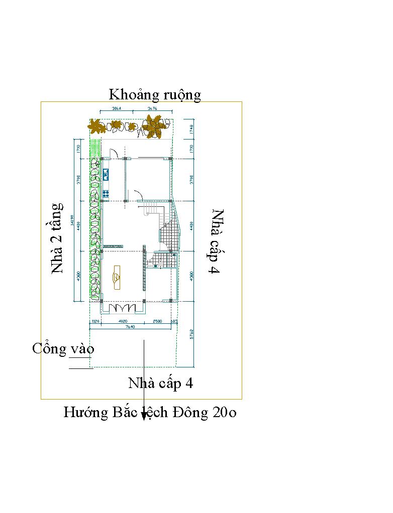 Gửi anh BNQ, Em gửi anh bản này, in rơ hơn ah. Thư trước em xác định tâm nhà là h́nh chữ nhật (6m3 x 14m1) tức là theo phần mở rộng ở tầng 2.