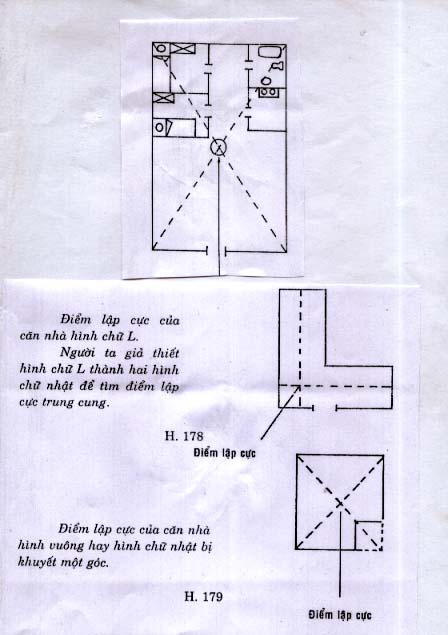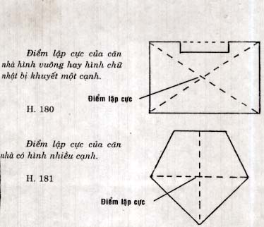 Hình 1 và 2 là các phương pháp xác định điểm lập cực hay trung cung của vài dang nhà.