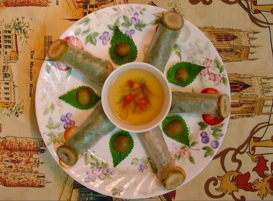 Mời anh maithon nem hàng bông, cơm lam cho đỡ thèm thuốc lá.