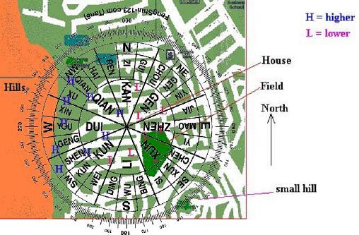 Tức là khi chúng ta muốn xem sự ảnh hưởng của khí đến từ 8 hướng bất cứ nơi nào đó th́ họ đặt la bàn với trọng tâm vào nơi đó, nếu muốn xem sự vượng suy của một đất nước hoặc thành phố th́ họ đặt trọng tâm vào và xem ảnh hưởng sự vượng suy của nơi đó.