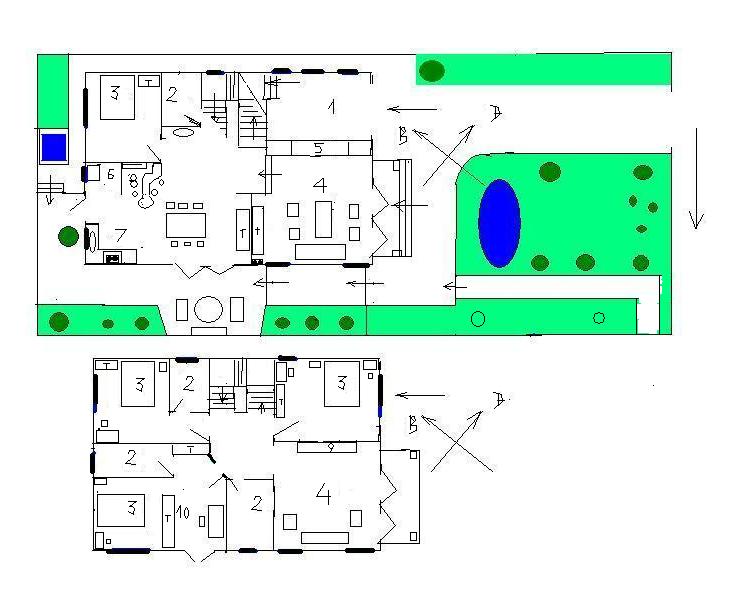 1/ Hướng nhà anh là 130 độ tức là toạ CÀN hướng TỐN kiêm TUẤT-TH̀N 5 độ. V́ kiêm nhiều nên đúng ra phải dùng số thế. Nhưng lại không có số thế nên vượng tinh vẫn đáo sơn, đáo hướng. Trường hợp này là nhà chỉ đắc vượng khí 1 cách miễn cưỡng, tạm bợ mà thôi. Cũng may mà phía trước nhà anh có ao nhỏ, xa xa lại có đại thuỷ của biển ĐÔNG chiếu nên cũng khá thuận lợi cho vấn đề tài chánh. Tuy nhiên, nếu nh́n kỷ sẽ thấy nhà anh bị phá cách, v́ garage nằm tại khu vực ph́a ĐÔNG, có sinh khí Cửu tử Hoả chiếu tới. Nếu chỉ có như thế thôi th́ đại lợi, v́ Cửu tử Hoả sinh cho Bát bạch Thổ của hướng, tài lộc sẽ tự nhiên mà đến. Nhưng v́ từ garage vào nhà lại có cầu thang tại khu vực phía ĐB, mà nơi này có hướng tinh Tứ lục chiếu tới, 4-9 gặp nhau lại kết hợp thành KIM tiên thiên, làm hao tổn Thổ khí của vượng tinh Bát bạch, mà garage lẫn cầu thang đều là những nơi động khí rất mạnh khiến cho gia đ́nh anh ngầm bị hao tổn lớn về tài lộc. Đó là chưa kể nhà anh có đại thuỷ bao bọc từ phía BẮC ṿng qua các khu vực ĐÔNG BẮC, ĐÔNG, ĐÔNG NAM và NAM. Cho nên 2 khu vực ĐÔNG và ĐÔNG BẮC được đại thuỷ nối liền tạo ra thế kết hợp 4-9 Kim tiên thiên mà làm cho hao tỗn vượng tinh của hướng. Rồi chưa kể khu vực phía NAM nhà anh có hướng tinh Tam bích chiếu tới. Nếu trong điều kiện b́nh thường th́ 3 gặp 8 sẽ kết hợp thành Mộc tiên thiên, đại lợi cho công danh, tài lộc, nhất là trong vận này. Nhưng v́ vượng tinh đang bị suy yếu v́ phải sinh xuất cho Kim tiên thiên 4-9, lại bị Mộc tiên thiên khắc là dấu hiệu nguy hiểm. Cho nên đoán vận khí nhà anh dù có hưng thịnh cũng không được lâu dài.