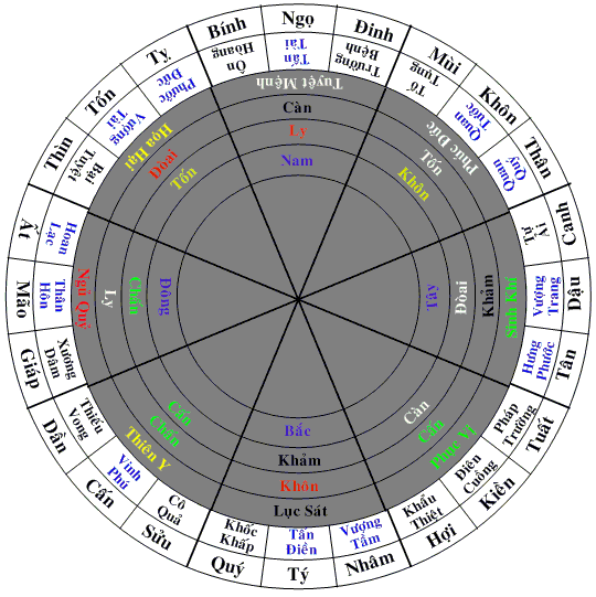 Và củng xin sửa lại là chử cấn đúng ra phải màu vàng và chử tốn phải màu xanh (trong ṿng hậu thiên bát quái)