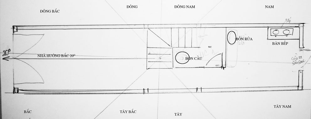 . Nhà hướng bắc (20 độ). Nhiều người nói hướng nhà đó không hợp với