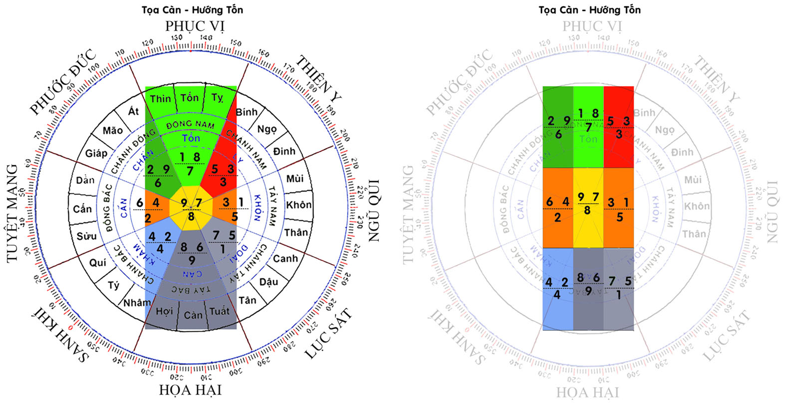 1- An sao theo cung của bát trạch ( mỗi cung 45độ )