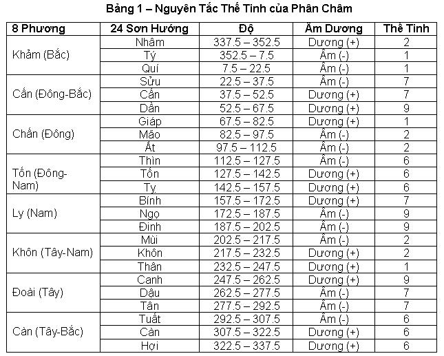 và kèm thêm Tabelle : Nguyên tắc tính thế Tinh của Phân Châm,