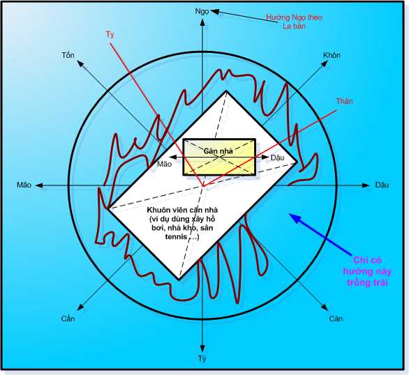 2)     giả sử rằng nhà chỉ c̣n một hướng, 3 bên tiếp giáp với nhà hàng xóm (như mô h́nh trên) hướng c̣n lại đó là hướng “khôn” th́ xác định hướng nhà cho mô h́nh này là hướng ǵ ạ ?