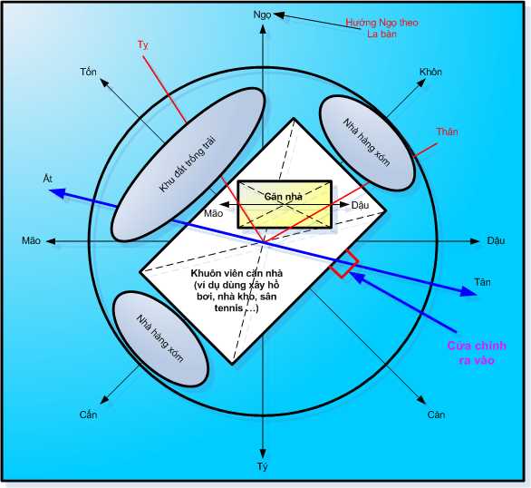 Cũng có thể là Tân-Ất, Măo-Dậu hay là một hướng khác. Điều cần thiết là phải dùng phương pháp trắc nghiệm và loại bỏ để chọn một hướng trùng hợp với mọi người đang sống trong căn nhà. V́ một khi trường khí đă h́nh thành cho căn nhà rồi, th́ mọi người đều chịu ảnh hưởng của trường khí đấy.