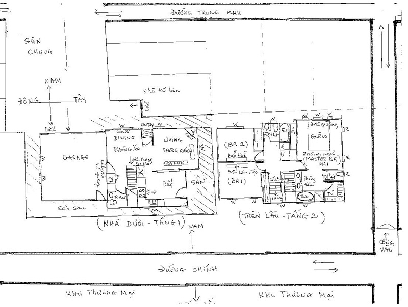 + Phía sau nhà dặt nhiều cây xanh, cửa sổ phía sau chỗ bàn làm việc, cửa từ gara ra sau nhà, treo 1 chuông gió đồng.