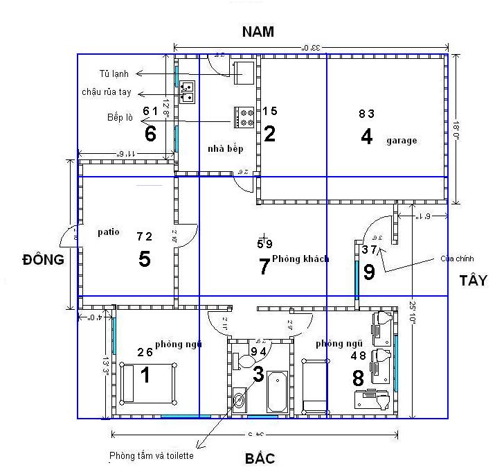 Hôm nay có được sơ đồ, tôi xin tranh thủ luận đoán tổng quát trạch vận căn nhà bằng lư thuyết Huyền Không Phi Tinh. Hy vọng anh BINHNGUYENQUAN sẻ bổ xung thêm các chi tiết quan trọng khác.