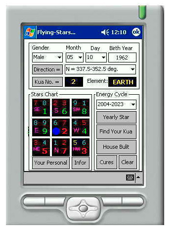 Sau đây là một chương tŕnh điện toán tôi đă soạn đặc biệt cho các thầy phong thủy sử dụng trong PocketPC 2000 như một cẩm nang khi dùng cửu cung phi tinh trong phong thủy và cách giải cho mỗi phương hướng bằng Anh ngữ.